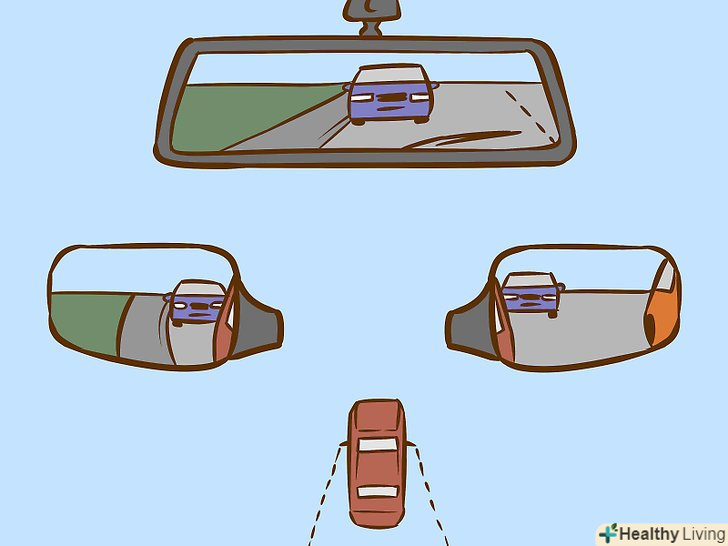 Під час руху зверніть увагу: випереджаючий вас автомобіль повинен спочатку з'явитися в середині центрального дзеркала. У міру наближення, відображення випереджаючої машини, поступово зміщуючись до краю центрального дзеркала, має одночасно з'явитися в бічному. Якщо все відбувається саме так, значить, перекриття між дзеркалами виключає появу мертвої зони.