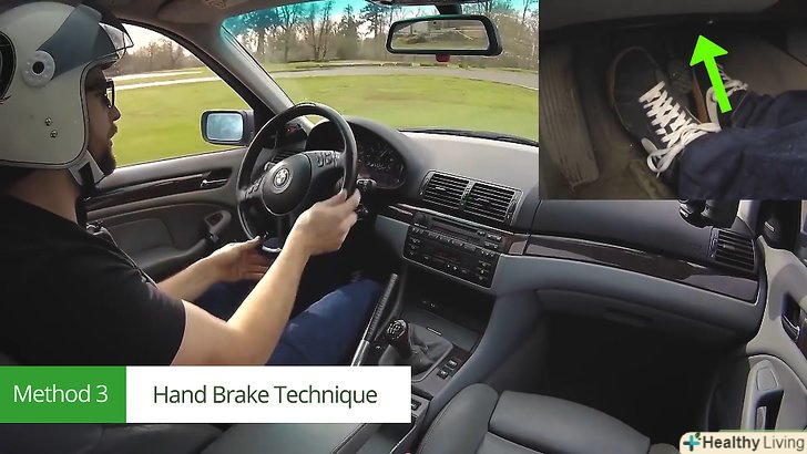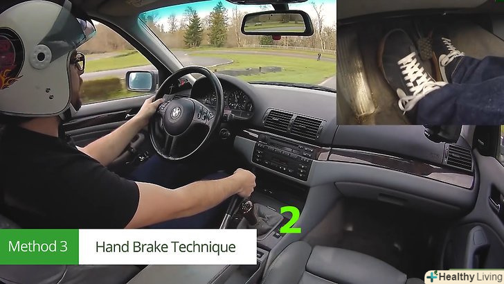 Навчіться поводитися з кермом використовуючи в цей момент ручне гальмо на швидкості 50-60 км/ч. (слабший крутний момент не дозволить вам досягти бажаного результату) і постарайтеся контролювати автомобіль до самої його зупинки.- З кожним разом, поки вам це комфортно, збільшуйте швидкість