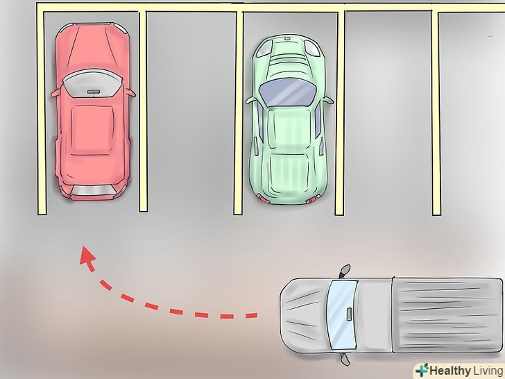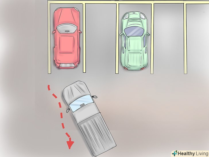 Якщо під час руху уздовж ряду ви помітили вільне паркувальне місце, то потрібно під'їхати до одного автомобіля ззаду, як ніби ви намагаєтеся стати на його паркувальне місце.робіть так, як показано на зображенні. Потрібно під'їхати до лівого автомобіля.