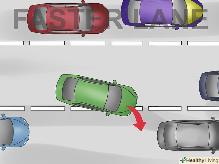 Тренуйтеся міняти смуги, коли рухаєтеся по автостраді.завжди включайте поворотники, дивіться в дзеркала і стежте за сліпими зонами автомобіля. Пам'ятайте, коли ви рухаєтеся по автостраді, завжди тримайтеся крайнього правого ряду, і перебудовуйтеся лівіше тільки при обгоні. Якщо всі будуть триматися цього правила, пробок на автострадах буде набагато менше. Якщо ви рухаєтеся 'по швидшому' лівому ряду, попереду вас порожньо, а ззаду колона автомобілів – ви створюєте ПРОБКУ. Плавно перебудуйтеся в правий ряд, дозволяючи себе обігнати. Контролювати швидкісний режим на автострадах, створюючи пробки - не ваше завдання.