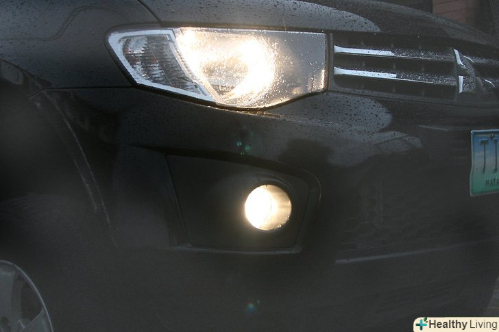 Використовуйте ближнє світло.видимість в тумані різко зменшується, тому включіть ближнє світло, Якщо у вашій машині відсутні підфарники і протитуманні фари. В умовах густого туману заборонено використовувати дальнє світло, промені якого будуть відбиватися від крапельок вологи, ще більше погіршуючи видимість. Але використання дальнього світла може виявитися більш ефективним, коли туман трохи розсіюється. Час від часу ви можете перемикати ближнє/дальнє світло, щоб перевірити, наскільки зменшилася щільність туману.
