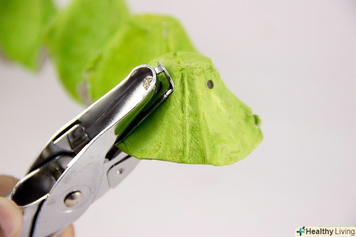Візьміть картонну упаковку з-під яєць і розріжте її. у вас повинно вийти вирізка з 6 цілих осередків. Якщо у вас є упаковка з-під 18 яєць, вам знадобиться 1/3 коробки. Якщо у вас контейнер з-під яєць на 12 осередків, вам слід лише розрізати її навпіл уздовж.