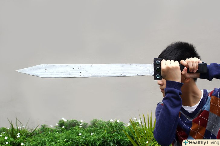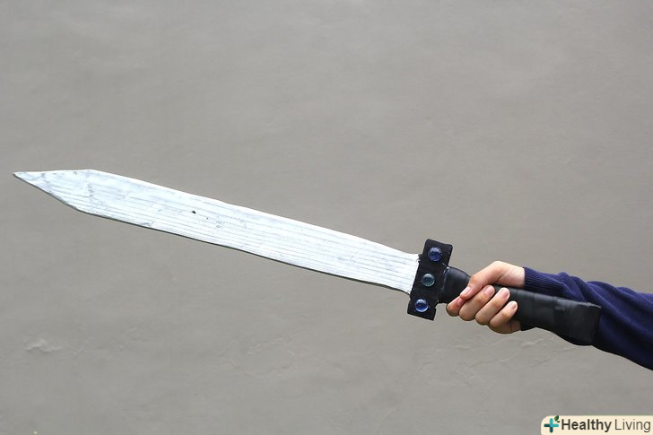 Внесіть додаткові штрихи в оформлення меча і насолодитеся кінцевим результатом. прикрасьте підставу рукояті меча пензликом. [14] намалюйте маркером візерунки на лезі меча. Або виточіть ці візерунки ножем. [15]- Щоб зробити піхви, зріжте довгий рукав зі старої сорочки. зашийте один кінець рукава. Вставте меч всередину, і все готово!