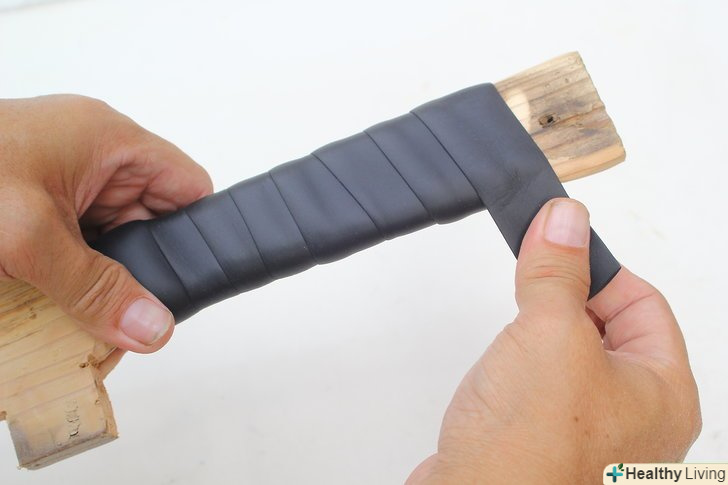 Обмотайте рукоять меча. так меч буде виглядати більш стильно і додатково забезпечить вам кращий захоплення рукояті при використанні меча. Для обмотки рукояті використовуйте ізоляційну стрічку. [13]- При відсутності обмотки піт вашої руки в поєднанні з силою удару мечем об щось може привести до того, що меч просто вислизне з захоплення.