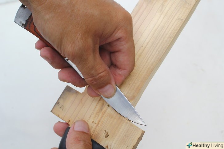 Виберіть дерев'яний брусок трохи більше потрібної довжини меча. візьміть для роботи більший брусок, ніж того вимагають ідеальні розміри меча. Це дасть вам деякий запас матеріалу на випадок помилкових рухів ножем, коли ви будете виточувати їм свій меч.- Щоб перевірити якість деревини, вдарте бруском об тверду поверхню. Якщо він зламається або трісне, візьміть інший брусок. [6]