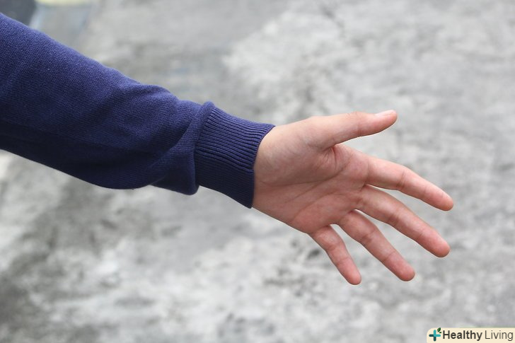 Встаньте прямо. тримайте спину прямо, а плечі відведіть назад. Руки при цьому повинні вільно звисати з боків. Кисті рук і пальці також повинні бути розслаблені і спрямовані до підлоги. [1]