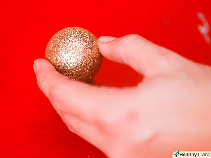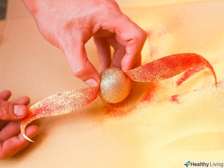 Якщо хочете, можна прикрасити кульку блискітками або паєтками. блискітки або паєтки можна приклеїти замість того, щоб розфарбовувати кульку. Якщо ви хочете прикрасити свій снітч блискітками, просто нанесіть на нього трохи аерозольного клею, а потім блискітки. Пензликом приберіть надлишки, а при бажанні повторіть процедуру, поки не досягнете потрібного результату. Якщо ви хочете прикрасити снітч золотистими паєтками, закріпіть їх на маленьких шпильках, а потім застроміть ці шпильки в кульку, так, щоб він повністю був покритий паєтками. [7]