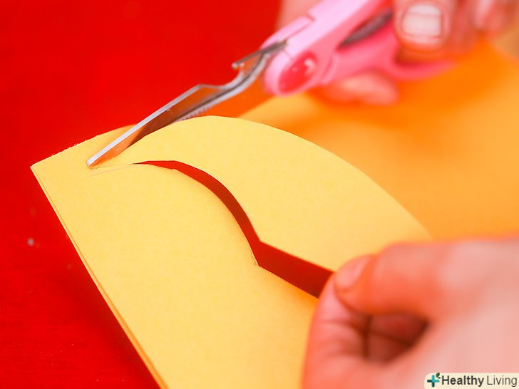 Зробіть крила. виріжте дві однакові фігури у формі крил з простого паперу. Найпростіший спосіб-скласти навпіл аркуш паперу і вирізати обидва крила за один раз.- Можна зробити крила будь-яким способом, найголовніше, щоб це були 2 однакових за розміром половинки кола. На прямій стороні деталей зробіть бахрому, яка буде зображувати пір'я. [4]