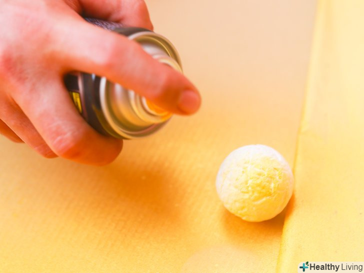 Розфарбуйте свій снітч. постеліть під м'ячик газету, щоб фарба не забруднила ваш робочий стіл. За допомогою балончика з золотистою фарбою нанесіть на м'ячик як мінімум два шари фарби і дайте висохнути. [2]