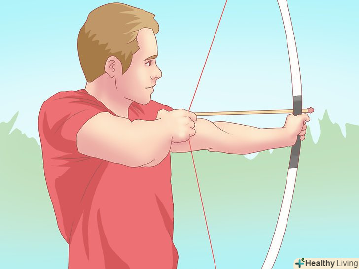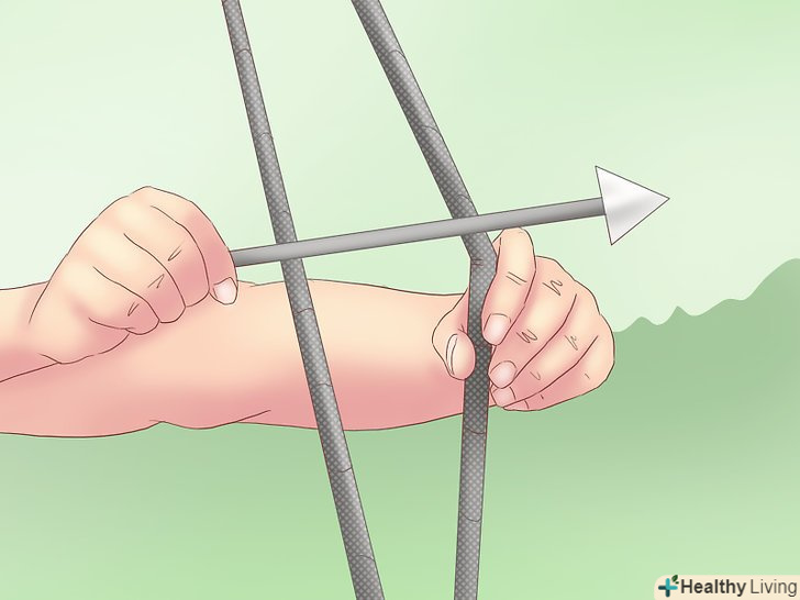 Дістаньте стрілу і випробуйте свій лук. Візьміть цибулю в ліву руку. Правою рукою візьміть стрілу і покладіть її на поличку, розташовану на ручці лука. Плоский кінець стріли упріть в тятиву, відтягніть її назад, відпустіть і простежте за польотом стріли.