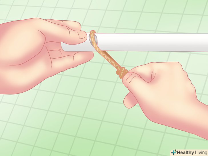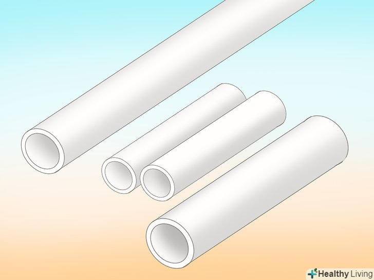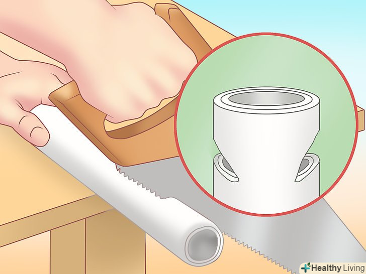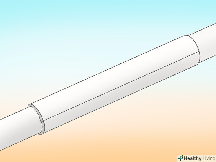 Візьміть трубу з ПВХ довжиною 1,2 метра і вставте в неї ХПВХ. виберіть досить довгу трубу з ПВХ і вставте в неї два 4-сантиметрових шматка CPVC. Повністю втисніть шматки CPVC в трубу з обох кінців. Вони повинні туго входити в трубу. Покрутіть вставки з ХПВХ або злегка постукайте по ним молотком, щоб вони повністю занурилися в трубу. Вставте їх з обох кінців труби. [3]- В результаті краю коротких вставок з ХПВХ повинні збігтися з краями довгої труби з ПВХ.