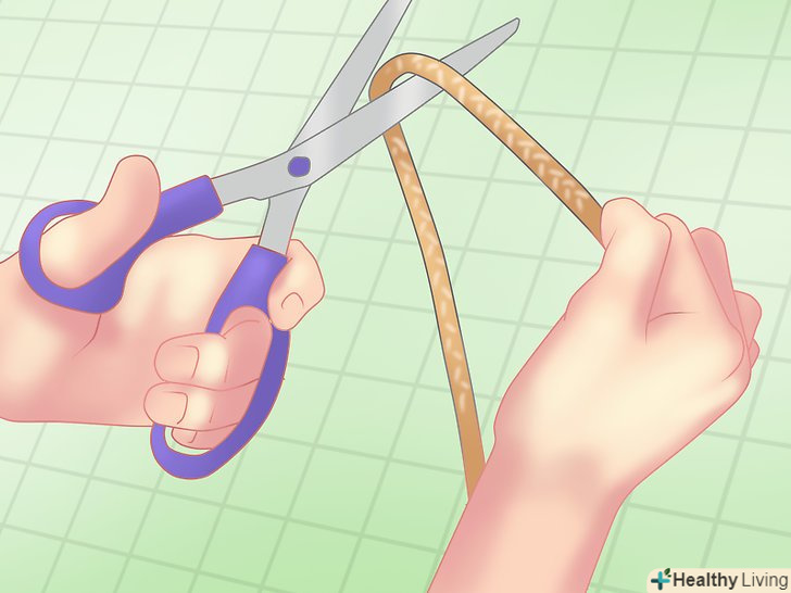 Приготуйте тятиву. Візьміть вимірювальну рулетку і відріжте шматок паракорда трохи довше 1,2 метра. Для натягування тятиви і зав'язування вузлів повинно вистачити запасу в 5 - 10 сантиметрів. [6]- Після розрізання паракорда у нього будуть розмочені кінці. Їх можна "запечатати": протягом декількох секунд потримайте кінці троса над полум'ям сірника або запальнички, поки вони не розплавляться. Після цього почекайте хоча б хвилину, поки кінці паракорда охолонуть. [7]