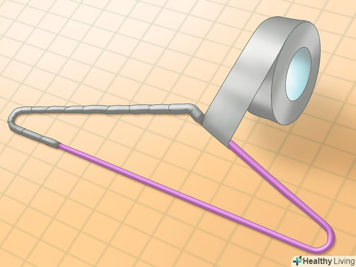 Оберніть цибулю клейкою стрічкою. Візьміть клейку стрічку і рівномірно обмотайте нею всю поверхню Вішалки. При необхідності накладіть стрічку декількома шарами, щоб з-під неї не виступали краю пластика. Для краси можна використовувати кольорову стрічку.- Щоб цибуля виглядала ефектніше, використовуйте сріблясту, золотисту, чорну або коричневу клейку стрічку.