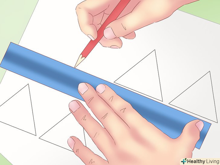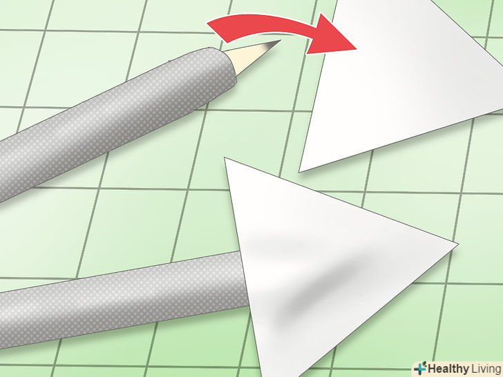 Накресліть наконечники стріл. Візьміть Листівковий папір або твердий картон і намалюйте по два трикутника для кожної стріли. Щоб наконечники вийшли однаковими, можна намалювати шаблон, вирізати його, а потім з його допомогою накреслити інші трикутники.- Наконечники можуть бути великими або маленькими, за вашим бажанням. Щоб наконечники стріл виглядали акуратно, намалюйте рівносторонні трикутники з довжиною сторони близько 5 сантиметрів.