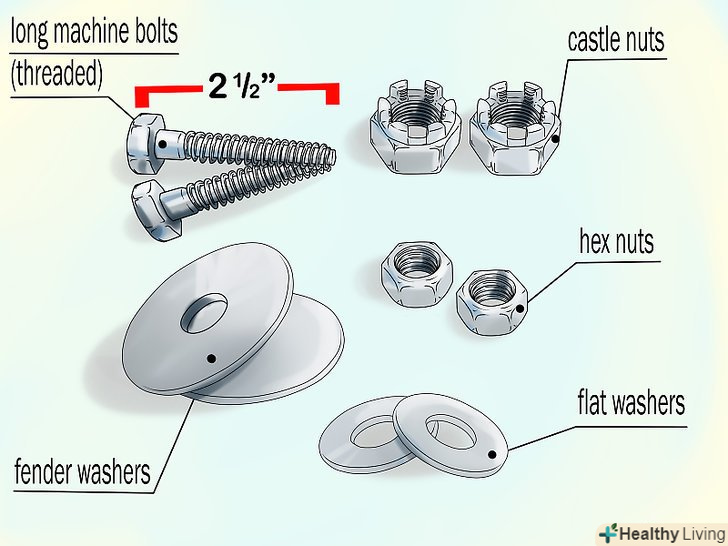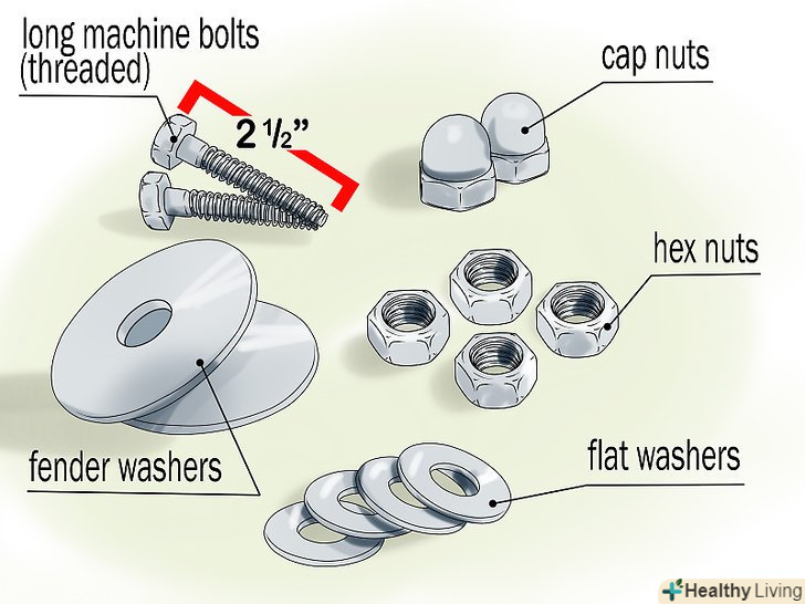 Купуйте деталі, щоб виготовити тури. у будь-якому шаховому наборі всього чотири тури, іноді званих турами (по дві кожного кольору). Тури цінуються в п'ять очок. Кожна з них починає гру зі свого кута шахівниці. [3] щоб зробити тури, вам буде потрібно взяти:- 4 машинних болта довжиною 1½ " (40 мм);