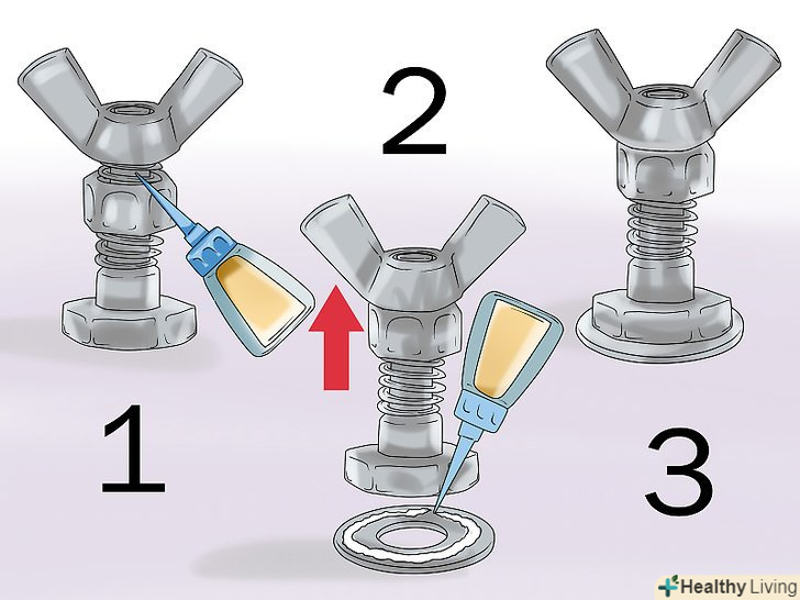 - Нанесіть клей на різьблення під верхньою шестигранною гайкою з шайбою, а потім підніміть до неї впритул другу шестигранну гайку з шайбою.