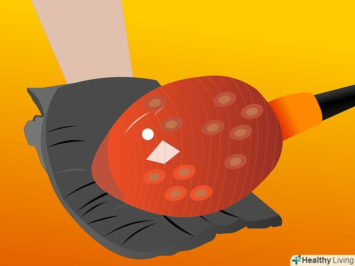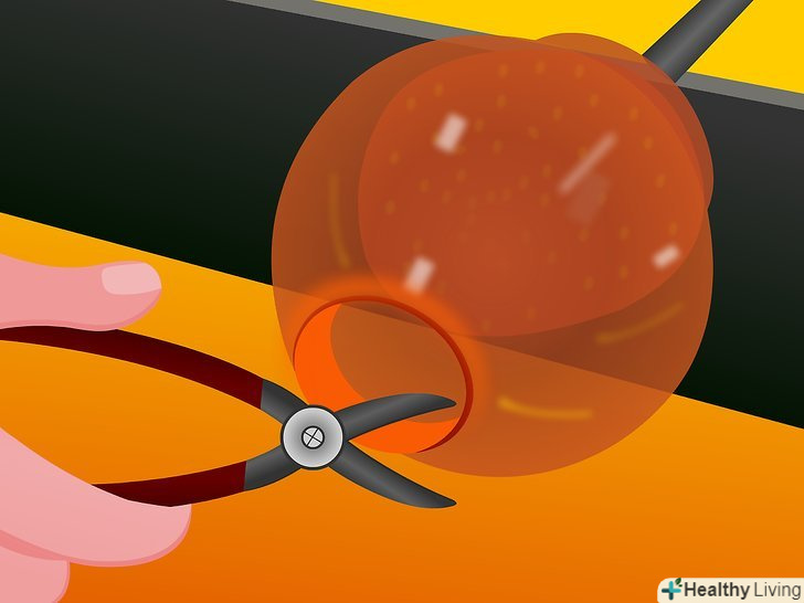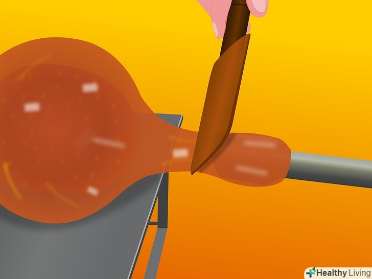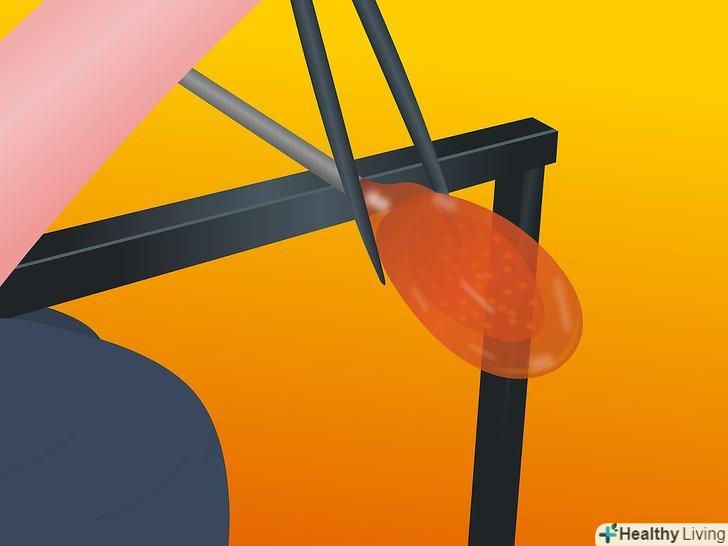 Почніть підносити скло ближче до основи полум'я. Тримайте його в полум'ї, поки не утвориться гарний Помаранчевий кулька.- Продовжуйте обертати скло, щоб воно зберігало круглу форму.