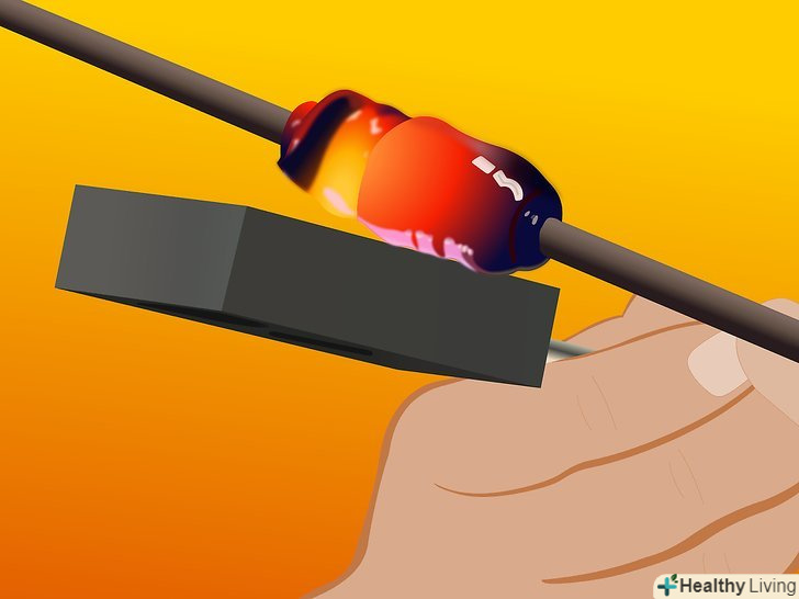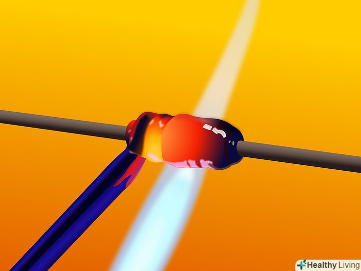 Знову внесіть тримач зі склом в полум'я, обертаючи скло для того, щоб воно не впало.- При бажанні, додайте до вийшла намистині інший колір. Зробіть це, дотримуючись кроків від #4 по #7, весь час обертаючи тримач і час від часу поміщаючи його назад в полум'я. Це завдання не для новачків, оскільки воно вимагає спритності і одночасного використання обох рук.