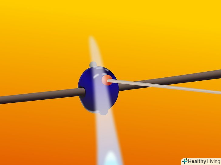 Прикріпіть розплавлений кінчик скла до тримача.- Помістіть скло на Тримач і почніть обертати його навколо тримача подалі від себе. Обертайте, поки у вас не вийде суцільне покриття власника.