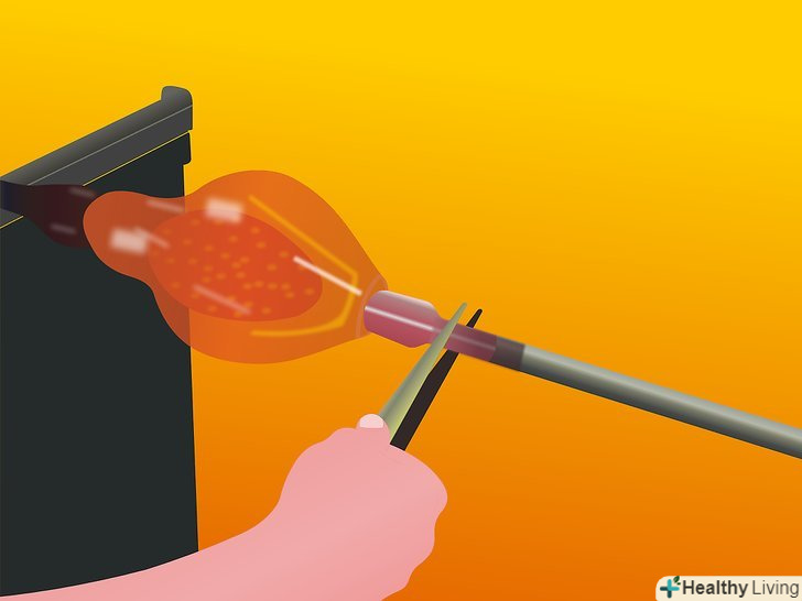 Зробіть надрізи. сформувавши виріб, зробіть за допомогою спеціальних щипців лінії надрізу на шийці. Діаметр шийки повинен бути рівним або меншим діаметру склодувної трубки. Продовжуйте обертати трубку!