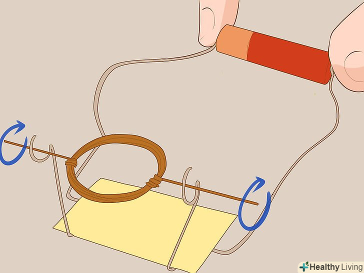Візьміть оправку — будь — який циліндричний об'єкт, наприклад, ручку або олівець-і накрутіть на нього ізольований дріт. ця дротяна спіраль буде якорем — рухомою частиною майбутнього електромотора. Якщо провід товстий, то діаметр оправлення повинен бути побільше. Якщо ви робите це в перший раз, то нехай і оправлення, і дріт будуть тонкими — з ними набагато легше управлятися. Зробіть приблизно 30 витків, щоб через мотор міг протікати достатній струм.