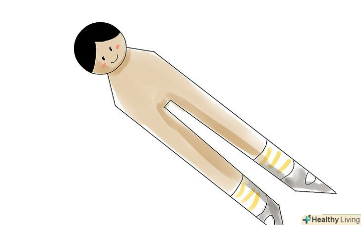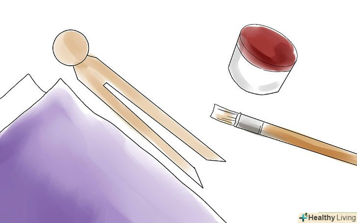 Розфарбуйте прищіпку. її закруглення вгорі послужить головою, а нижня частина – стане ногами ляльки. Використовуйте акрилові фарби на свій розсуд, щоб прикрасити будь-який елементи ляльки, в тому числі взуття. Вона може легко вийти, пофарбувавши одним відтінком приблизно ¼ кінчиків прищіпки на обох ніжках, а потім, після просушування, промальувавши частково чорним або коричневим кольором поверх цього шару. В результаті чорні або коричневі елементи – це взуття, а деталі початкового забарвлення – шкарпетки.- Ви при бажанні можете розфарбувати прищіпку в натуральний колір шкіри, але це зовсім не обов'язково. Якщо пофарбували, дайте фарбі висохнути перед нанесенням інших рис.