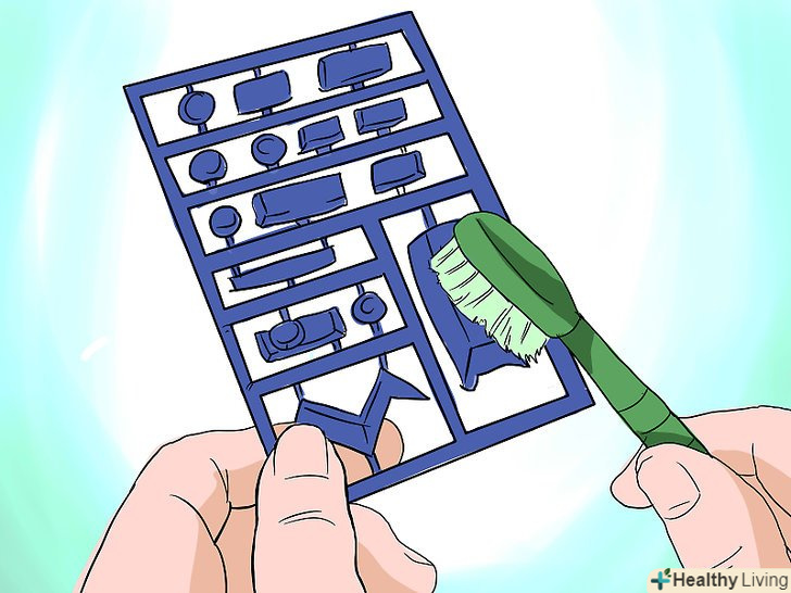 Вимийте деталі. використовуючи стару зубну щітку, засіб для миття посуду і теплу воду, ретельно вимийте частини моделі, поки вони ще не розділені. Ретельно промийте деталі і дайте їм повністю висохнути.