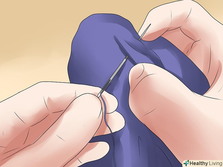 Суворою ниткою прошийте довгими стібками навколо шиї Ляльки і злегка стягніть їх, щоб вийшла голова ляльки.- Ви також можете пов'язати ляльці стрічку в якості шарфа, щоб виділити шию Ляльки і створити їй власний унікальний стиль.