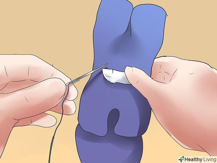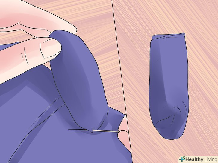 Набийте носок довжиною до щиколотки і зашийте верхівку. ви також можете взяти і звичайний носок і відрізати його до потрібної довжини. Носок цього носка стане головою ляльки, а п'ята – п'ятою точкою.