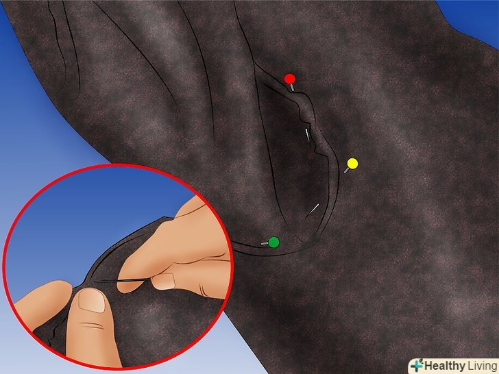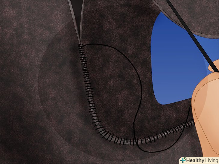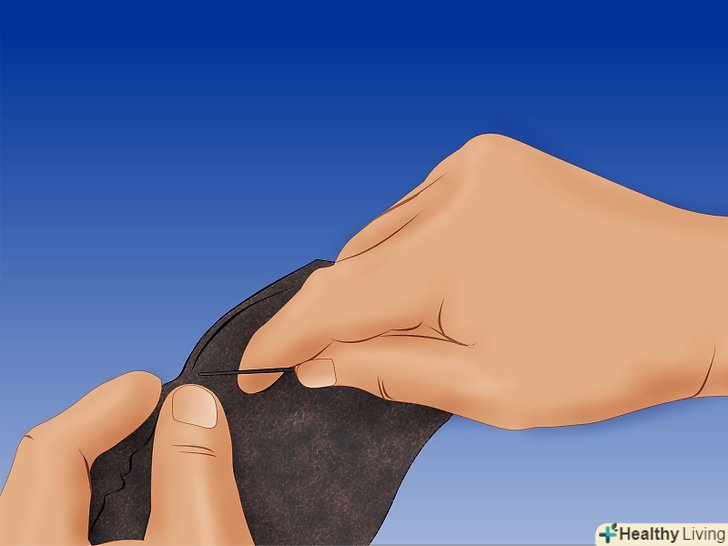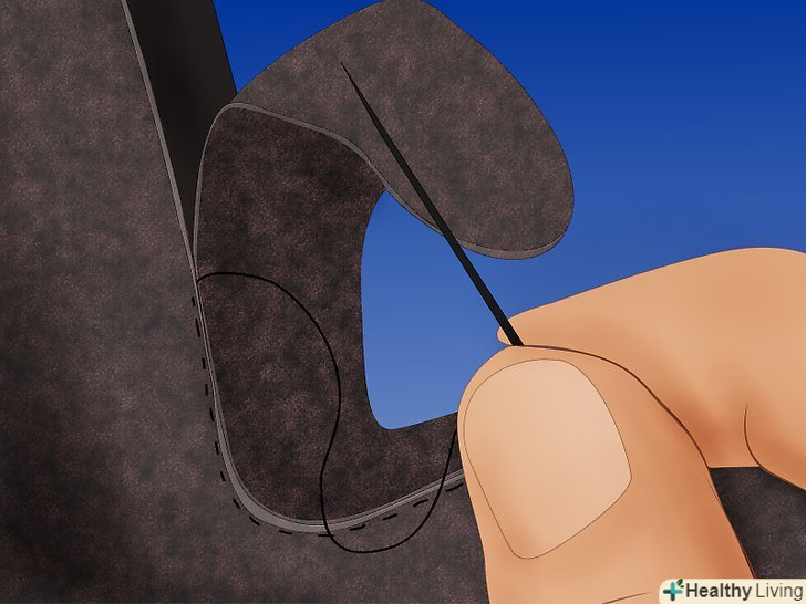 Зшийте бічний шов великого пальця. [3] складіть деталь великого пальця навпіл і зшийте її бік до самого верху. Шов повинен йти від точки кінця вигину перетинки.- Якщо ви хочете, щоб швів не було видно, то виконувати їх необхідно з виворітного боку, складаючи деталі особою всередину, і згодом вивертати.