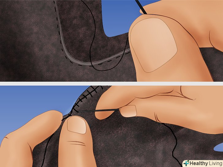 Повторіть весь процес, щоб зшити другу рукавичку. дотримуйтесь ті ж самі вказівки по збору залишилися деталей зі шкіри в аналогічну рукавичку.- Виконайте бічний шов на деталі великого пальця, вшийте деталь у відповідний отвір.