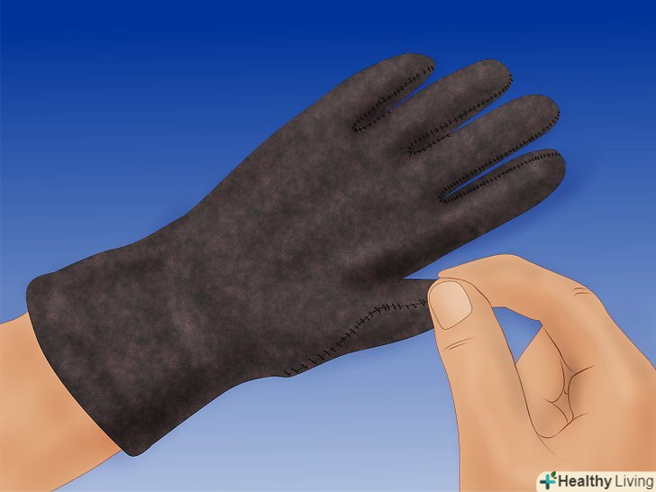 Перевірте розтяжність шкіри. потягніть шкіру, щоб перевірити її розтяжність. Якщо після Вашого розтягування шкіра негайно приймає свою колишню форму, то ніяких подальших приготувань не потрібно. Якщо шкіра починає трохи провисати або тягнеться занадто сильно, то вам необхідно зробити її більш щільною, щоб контролювати розтяжність.- Сама по собі розтяжність є хорошим властивістю, але при зайвому її кількості і без виправлення цього факту рукавички можуть стати вам великі вже після декількох випадків шкарпетки.