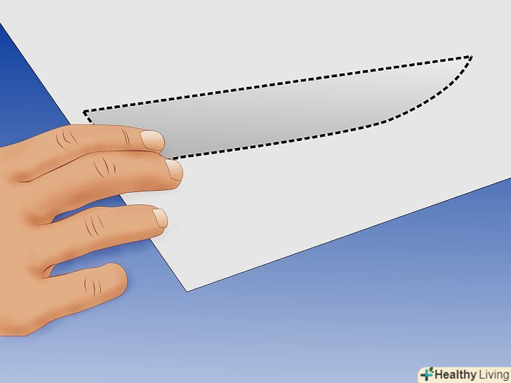 Виготовте викрійки середніх деталей пальців. вони будуть вшиватися між пальцями.- Складіть аркуш паперу навпіл і помістіть його між вказівним і середнім пальцями неосновної руки. Місце згину повинно розташовуватися в самому низу між пальцями.