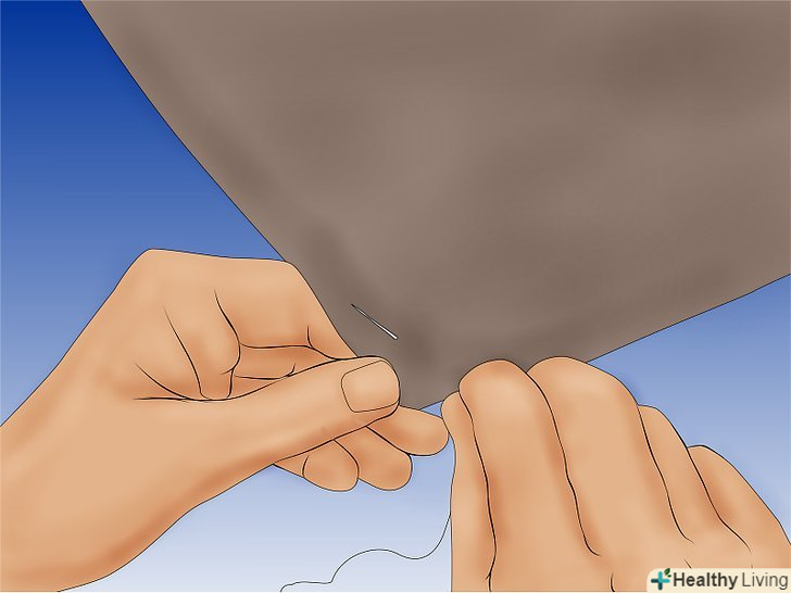 Зшийте бічний шов рукавички. при необхідності сколите краю, щоб вони лежали рівно. Зашийте на рукавичці будь-які залишені в районі пальців отвори.- Єдиним отвором, що залишився на рукавичці після даного кроку має бути вхідний отвір для руки.