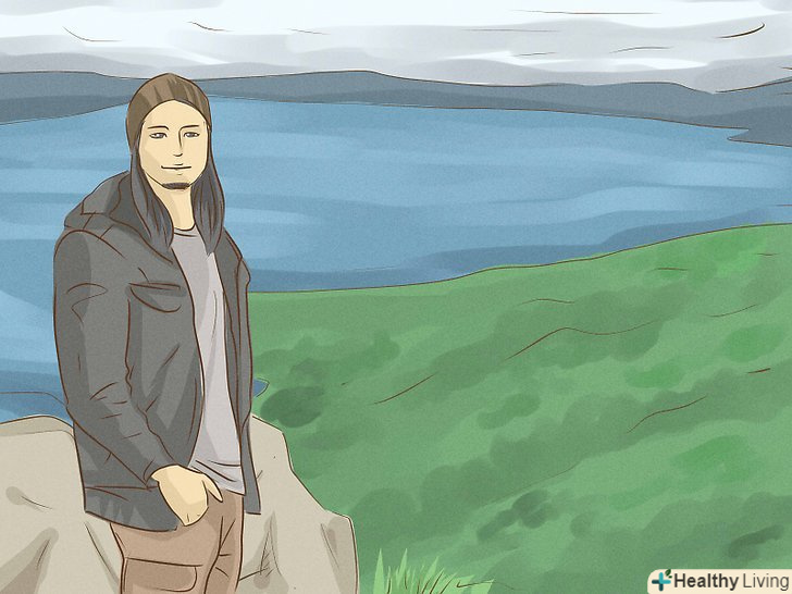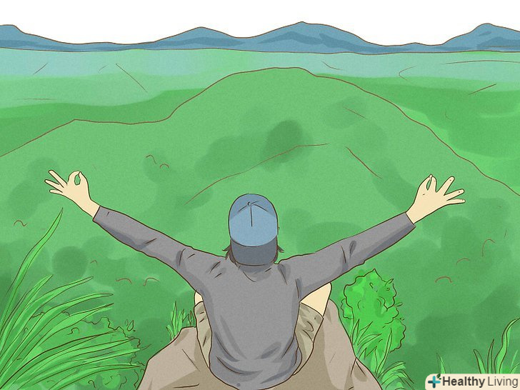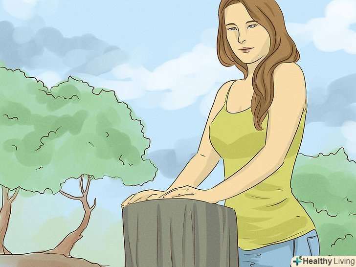 Використовуйте ландшафт як фон. одна з переваг фотографій на вулиці – наявність великої кількості цікавих пейзажів, які можна зробити частиною кадру. Спробуйте сфотографуватися на тлі мальовничого місця або присядьте біля дерева, щоб вийшов простий знімок на природі. [30]- Переконайтеся, що на тлі немає сторонніх елементів, які можуть зіпсувати кадр, на зразок ліній електропередачі або гнойової купи.