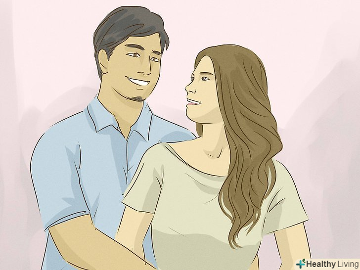 Природно взаємодійте з іншими людьми в кадрі. якщо ви хочете зробити парне або групове фото, то ведіть себе розслаблено і виберіть пози, які будуть злегка відрізнятися. При цьому не бійтеся взаємодіяти з іншими людьми в кадрі – дивіться в очі, тримайтеся за руки або обіймайте один одного, щоб вийшов теплий знімок. [18]- Наприклад, якщо ви фотографуєтеся з групою друзів, можна покласти руку на плече сусідові по фотографії. На парних знімках можна обіймати партнера і дивитися в камеру.