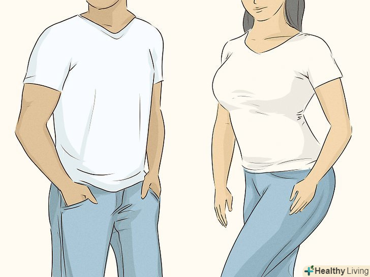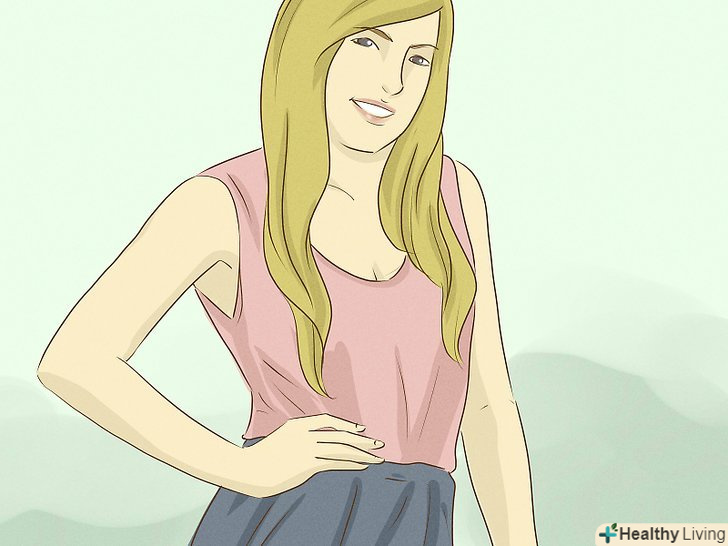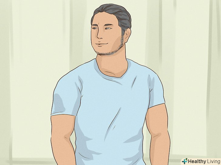 Трохи зігніть руки в суглобах. щоб виглядати розслаблено і природно, трохи зігніть руки в ліктях. За бажанням можна уперти одну або обидві руки в стегна, але при цьому відведіть лікті назад, щоб виглядати розслаблено. [16]- Якщо ви хочете підкреслити м'язи, то притисніть руки до тіла. Якщо ж ви хочете, щоб руки здавалися більш тонкими, то не притискайте їх до тіла. [17]