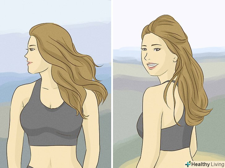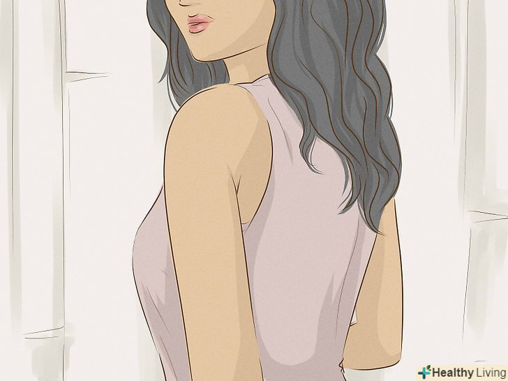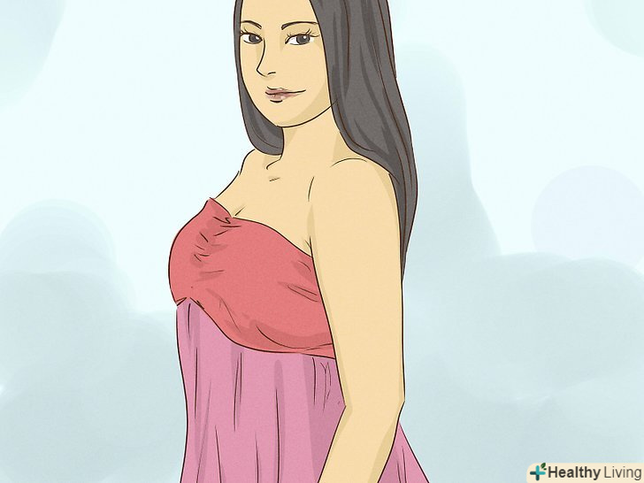 Подовжити шию і присядьте або стійте рівно. уявіть, що з вашої голови виходить волосінь, яка дозволяє вирівняти все тіло. Підніміть голову і шию, а плечі опустіть вниз. [4]- Вийде довга пряма лінія, яка підкреслить вигин шиї і плечей.