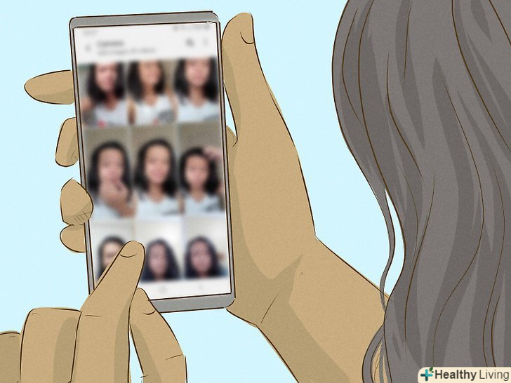 Робіть багато знімків, а потім вибирайте кращі варіанти. зробіть максимально можливу кількість кадрів з різними виразами обличчя, а також різним нахилом голови і тіла. Потім перегляньте відзнятий матеріал. Вивчіть знімки і зрозумійте, що Вам подобається, а що не подобається. З досвідом ви будете точно знати ракурси, які підкреслюють ваші достоїнства, а вибір поз для Селфі стане елементарним завданням. [6]- У кожної людини свій ідеальний ракурс, а для пошуку оптимального варіанту слід багато експериментувати. Наприклад, фотографуйте трохи зверху, якщо у вас великий підборіддя, але вибирайте бічний або нижній ракурс, якщо у вас великий лоб.