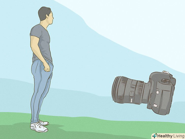 Зробіть кілька глибоких вдихів, щоб розслабитися. Якщо ви хвилюєтеся або напружуєтеся перед камерою, то на знімках напруга відобразиться у вашому тілі і виразі обличчя. Зробіть кілька довгих, глибоких вдихів, щоб позбутися від напруги і комфортно відчувати себе перед камерою. [20]- Наприклад, вдихайте на 4 рахунки, затримайте дихання на 4 рахунки і видихайте на 4 рахунки. Такі дії слід повторити 2-3 рази або до тих пір, поки не відчуєте спокій.