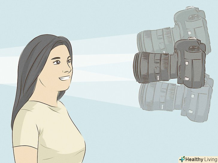 Поверніться обличчям до найближчого джерела світла. якщо ви хочете зробити професійний плечовий портрет або інший діловий знімок, то слід сісти або стати обличчям до найяскравішого джерела світла в приміщенні. Так ваше обличчя не опиниться в тіні на готовому знімку. [21]- Професійний фотограф може використовувати власне джерело світла або відбивач, щоб правильно висвітлити обличчя.