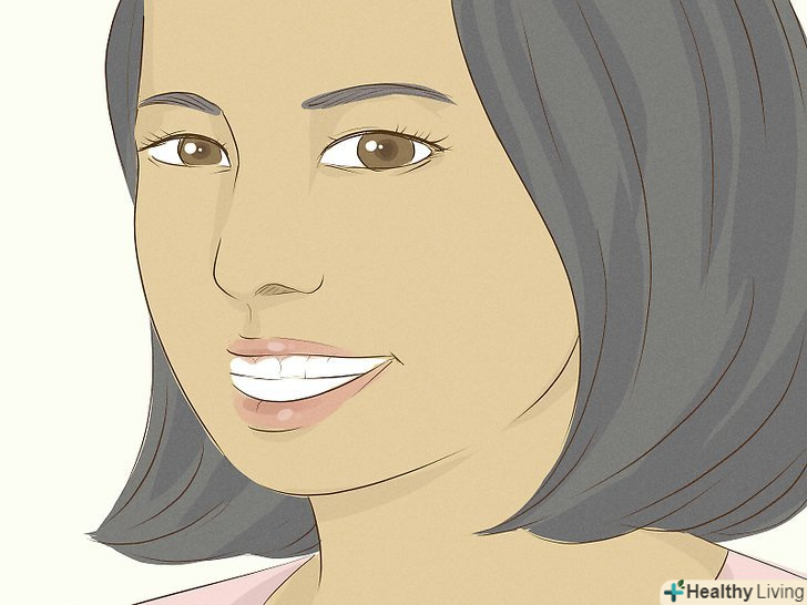 Притисніть язик до зубів, щоб вийшла щира посмішка. якщо ви хочете виглядати на фото так, ніби ви відмінно проводите час, то широко посміхніться, а потім притисніть мову до верхніх передніх зубів. Це дозволить підняти щоки, щоб ваша посмішка виглядала більш природною. [22]- Для ще більш щирої посмішки подумайте про кохану людину або предмет.