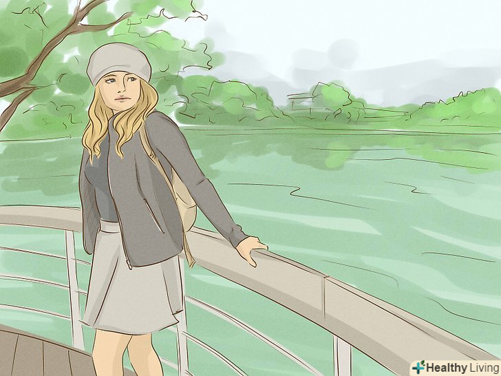 Використовуйте сміливі, масштабні Пози, щоб займати більше простору. під час зйомки в приміщенні не завжди достатньо місця для активних рухів і експериментів. Тоді як на вулиці можна бігати, стрибати, розмахувати руками і взаємодіяти з навколишнім світом. Не стійте на місці і почніть рухатися, щоб знайти натхнення для фотографій! [31]- Для початку зробіть кілька знімків в надійних позах. Так у вас завжди буде готовий заділ, а в час, що залишився можна буде вільно експериментувати.
