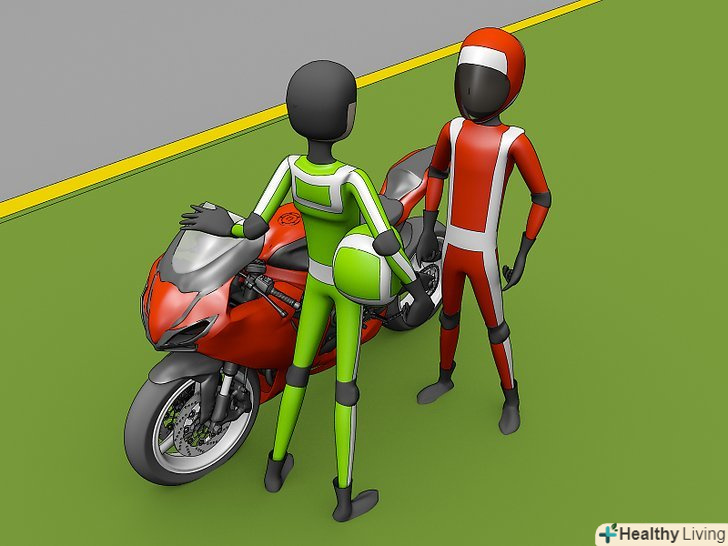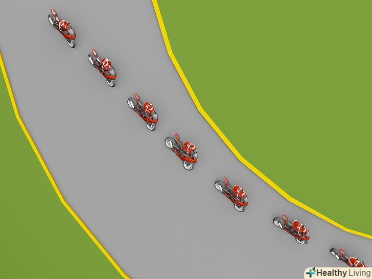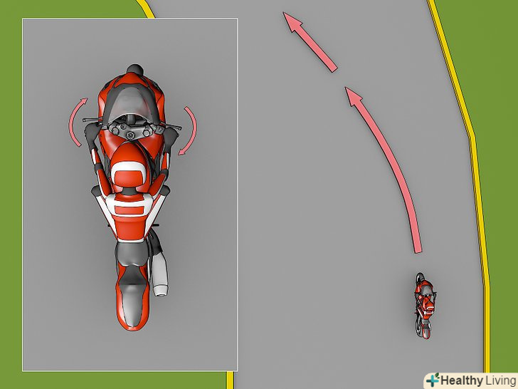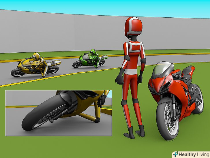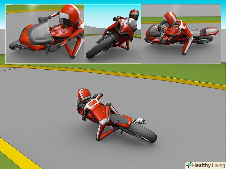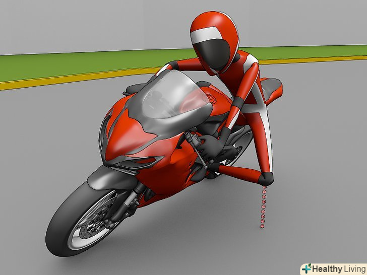 Зверніть увагу на зчеплення з поверхнею і вивчіть його.під час проходження даних вправ ви також повинні вивчити зчеплення з поверхнею. Придивіться до більш швидким пілотам, вивчіть положення їх тіла, як вони переміщують свою вагу до низу внутрішньої частини повороту. Коліно виставлено, тулуб зміщується до внутрішньої частини повороту, голова розташована зовні екрану поруч з краєм переднього обтічника.- На даний момент, ви очікуєте від мотоцикла більшого зчеплення, ніж використовуєте, і якщо він не зісковзне або розіб'ється, то ви опинитеся праві. Продовжуйте відточувати навички кута нахилу і положення тіла. В цілому ідея полягає в тому, щоб навчитися зрізати кути з мінімальним необхідним нахилом мотоцикла, використовуючи правильне положення вашого тіла.