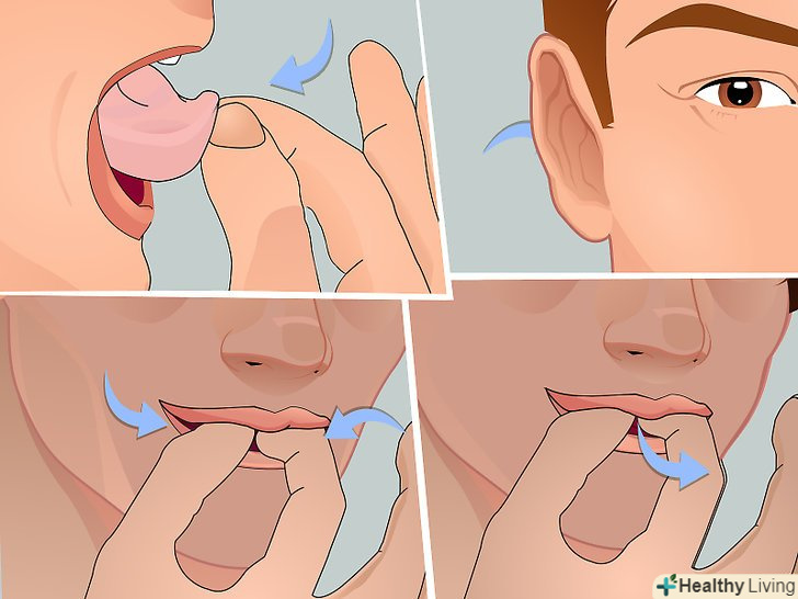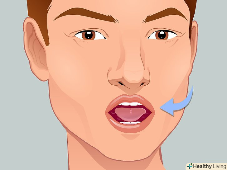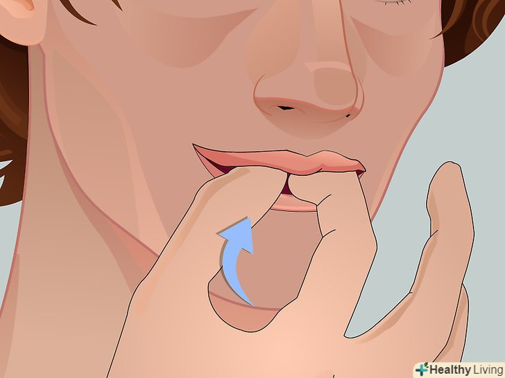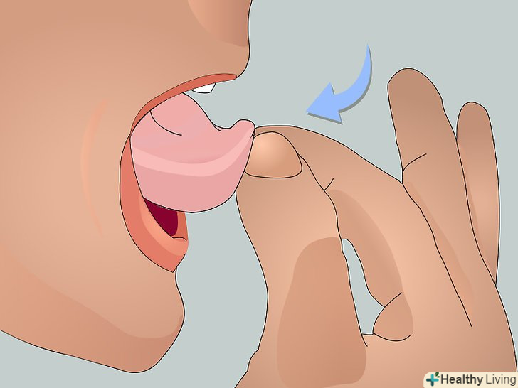 Проштовхніть мову глибше всередину великим і вказівним пальцями. розташуйте кінчики великого і вказівного пальців з нижньої сторони язика і трохи Натисніть, щоб підкрутити язик назад вглиб рота. Загніть назад Лише чверть мови. Не тисніть сильно на мову і тримайте кінчики великого і вказівного пальців зімкнутими разом. [3]- Пальці повинні надавати на мову достатній тиск, щоб його кінчик злегка підкручувався назад, але не загортався повністю.