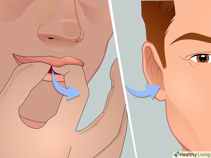 Зімкніть губи навколо пальців. зімкніть губи на перших фалангах пальців, які знаходяться у вас в роті, не залишаючи повітрю можливості виходити з куточків рота. Залиште невеликий отвір між нижньою губою і внутрішньою частиною кільця з пальців. Саме там повинен проходити повітря, створюючи свистячий звук. [4]- Переконайтеся в тому, що у всіх інших місцях навколо кільця з пальців повітря не може проходити. Якщо повітря буде виходити з рота десь ще, то гучного свисту не вийде.