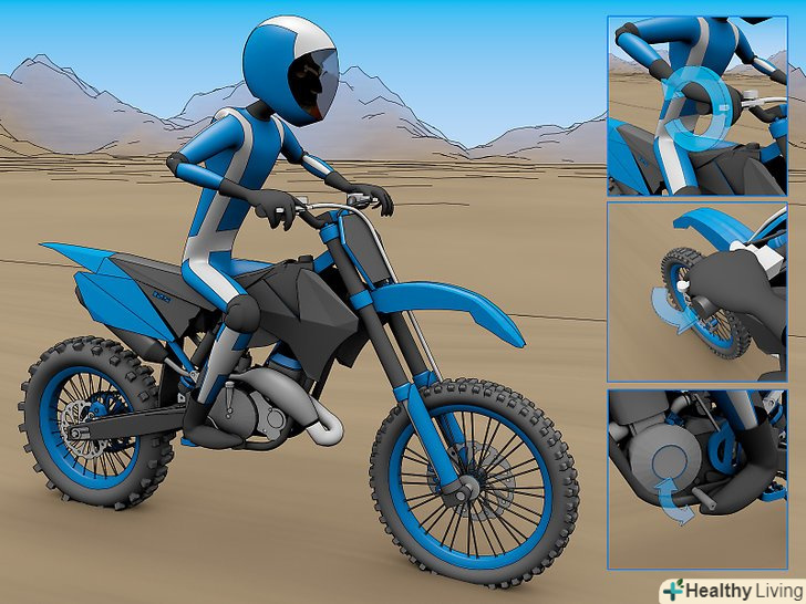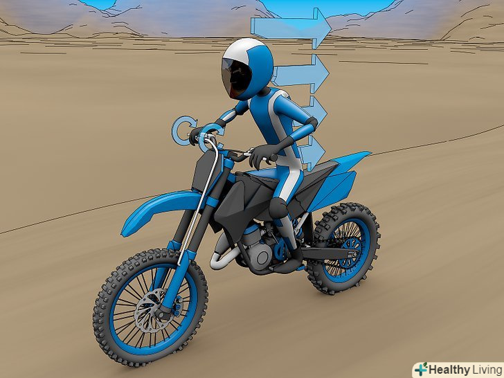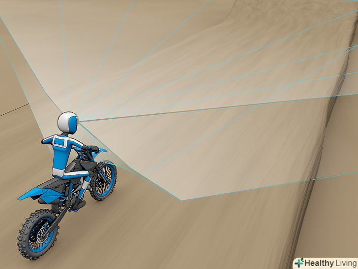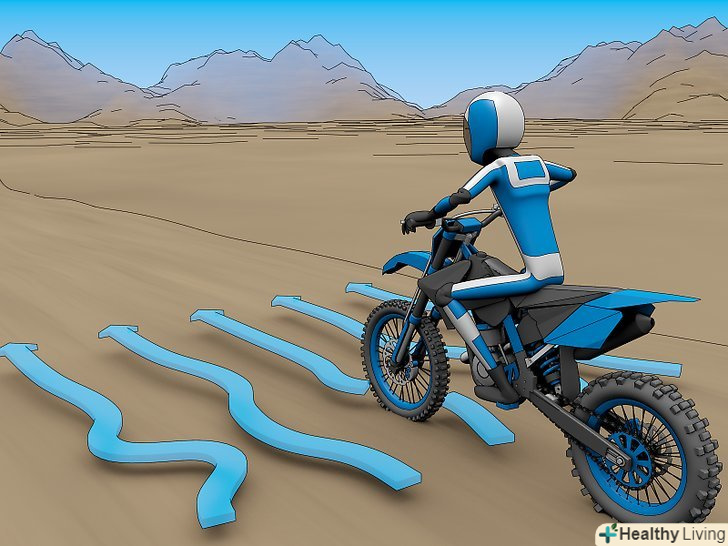 Ознайомтеся з" почуттям " їзди.тепер, коли ви посаджені належним чином, почніть їхати по колу. Мета цієї першої поїздки полягає в тому, щоб відчути позашляховий мотоцикл, оскільки він їздить по бруду. Якщо ви звикли до вуличного мотоцикла, то їздити на позашляховому мотоциклі буде трохи незвично спочатку, тому що земля нерівна, і мотоцикл буде “звиватися“ трохи під Вами. Це нормально. Як новачок, ви будете найбільш ймовірно“ звиватися " ще більше, тому що ви будете їхати дуже повільно. У той час як ви прогресуєте до більш високих швидкостей, ви будете бачити, що ваше переднє колесо буде "плавати" трохи більше, , точніше слідувати за кожним невеликим поворотом в грязі .На трасі ви або в поле, просто проїдьтеся назад і вперед протягом 20 хвилин. Кожен раз спробуйте проїхати трохи швидше, поки ви не відчуєте, що мотоцикл не почне настільки сильно “звиватися“.