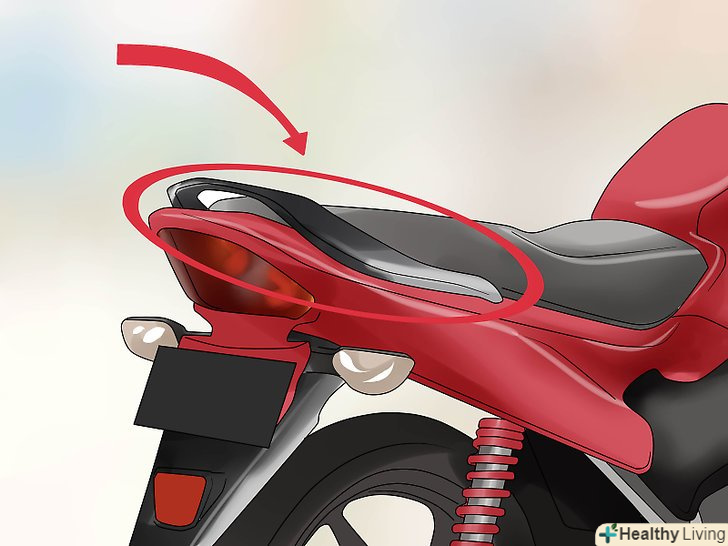 Знайдіть нерухому деталь з кожної сторони ззаду вашого мотоцикла.всі мотоцикли трохи відрізняються, тому переконайтеся, що обрана деталь це міцна структурна частина мотоцикла, наприклад, рама.