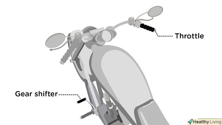 Вивчіть управління.перемикання швидкостей на напівавтоматичній трансмісії куди простіше: використовується тільки газ і важіль перемикання передач. У мотоциклах з коробкою-напівавтоматом зчеплення з'єднане з важелем перемикання передач, тому, натискаючи або піднімаючи цей важіль, ви одночасно регулюєте зчеплення.- Заведіть двигун.перед цим поставте мотоцикл на нейтральну передачу.