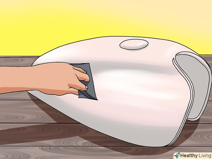 Нанесіть на поверхню шар кузовної шпаклівки.[1] це допоможе зробити стінки бензобака максимально рівними і гладкими. Кузовна шпаклівка продається в магазинах автозапчастин і звичайних господарських магазинах.- Добре розмішайте шпаклівку перед використанням, щоб не залишилося грудок. Вона швидко застигає, тому в роботі краще використовувати невеликі порції.